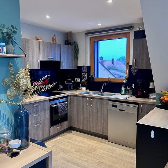 Superbe appartement 4 pièces disponible à partir de début Février à DETTWILLER (67) ! Situé proche de toutes commodités (gare, écoles, commerces, cabinets médicaux et axes routiers), venir découvrir ce magnifique duplex. Il se compose: Une cuisine équipée ouverte sur un grand salon/séjour lumineux, 3 chambres spacieuses, 2 salles de bains et un WC séparé. Une terrasse de 17m2, un garage, une cave intérieure et un emplacement de parking extérieur complètent ce bien. L'immeuble bénéficie d'une construction passive : confort thermique et faible...