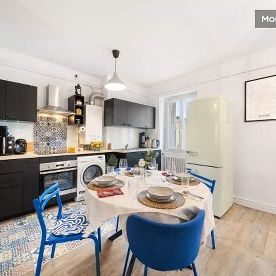 Welcome to the Refuge Dijonnais: the ideal solution for your medium-term stays in Dijon. Whether you're on a work assignment, in personal transition or on a training course, this 3-room flat (T3) has been entirely designed to provide a serene and functional living environment. Located on the raised ground floor of a quiet residence, it combines modern comfort with easy access. HIGHLIGHTS : -> PARKING: Free, ultra-easy parking right in front of the building. A luxury in Dijon that simplifies your daily life. -> BEDROOMS: Two spacious bedrooms...