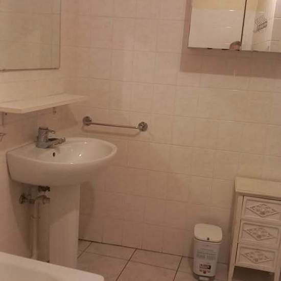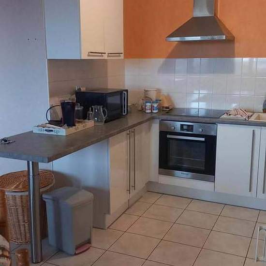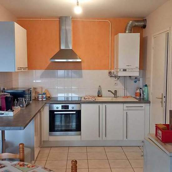 Loue à Francaltroff F3 , 1 er étage , cuisine équipée attenant au séjour, cellier, 2 chambres à coucher, salle de bain avec baignoire et parois de douche, chauffage individuel gaz , parking