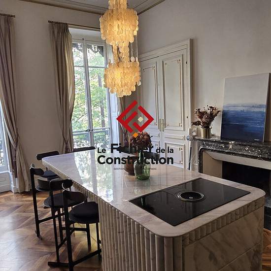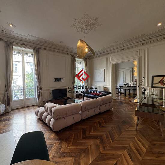 GRENOBLE - Quartier des antiquaires / Préfecture - A LOUER BIEN D'EXCEPTION - Magnifique appartement Haussmannien entièrement meublé avec goût de 138 m² sur 2 étages comprenant un grand séjour de 43 m² avec balcon, une cuisine semie ouverte entièrement équipée avec ilôt central en marbre (four, plaques, cave à vin, lave vaisselle...), 3 chambres et 2 salles de bains, un grand dressing avec coin buanderie - Prestations de qualités - Nombreux rangements - Libre Zone soumise à l'encadrement des loyers - Loyer de base : 2150 ? dont 50 ? de provi...