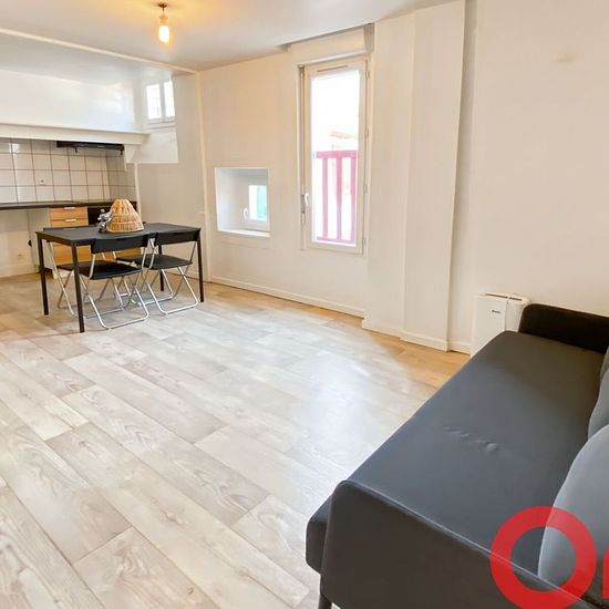 Appartement T3bis meublé, 4 pièces, 58.54m² HASPARREN. Appartement de type T3bis meublé situé au 2ème étage d'une résidence sans ascenseur en plein centre d'Hasparren. Entrée avec dégagement, une première chambre, séjour sur cuisine ouverte aménagée et équipée (hotte aspirante, plaque de cuisson, réfrigérateur/congélateur. Dégagement, deux autres chambres avec placard, salle de bains et WC indépendant. Chauffage électrique. Pas de place de parking ni de cave. Disponible rapidement. Loyer : 785€ Caution : 1550€ Honoraires d'entrée : 650€