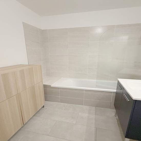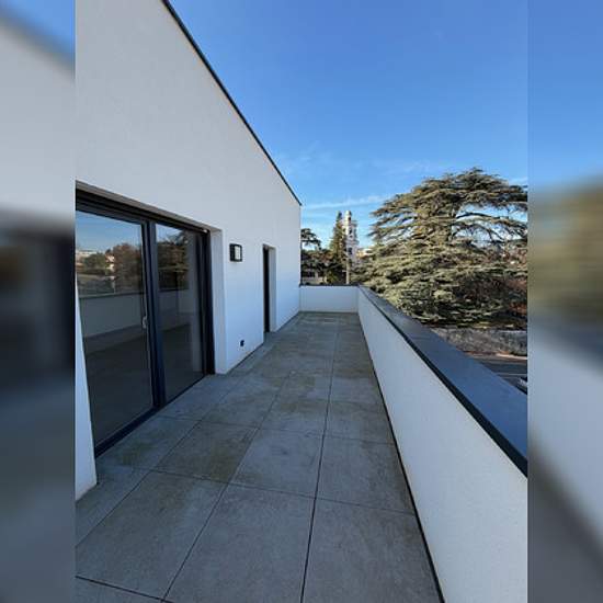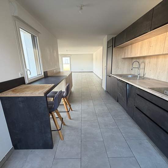 A proximité du centre d'Irigny et très bien desservi en transports, un appartement de type 4 avec une belle vue dégagée situé au 2ème étage d'une résidence très récente et sécurisée construite en 2022 comprenant un hall d'entrée, une cuisine aménagée et équipée ouverte sur un séjour lumineux donnant accès à un grand balcon, 1 suite parentale avec dressing, salle d'eau et WC, un coin nuit avec 2 chambres, salle de bains et buanderie, un 2ème WC. Un garage double en sous-sol Loyer : 1419.62 EUR Charges : 110 EUR