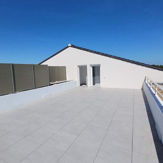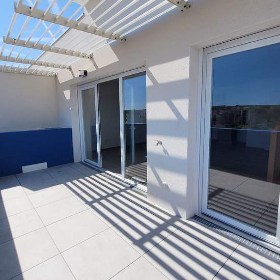Istres, 20 route de la Capelette. Pas de frais d'agence. Duplex T4 de 92.88 m² dans un immeuble neuf tout juste livré, Vue panoramique avec ses deux terrasses dont une de 53 m² en toiture. Il comprend au premier niveau 1 hall d'entrée, un vaste séjour sur cuisine ouverte semi-équipée donnant sur la première terrasse exposée Est, une salle de bain, 1 WC séparé, une chambre. À l'étage. deux chambres supplémentaires, une salle d'eau avec WC séparé, un dégagement / bureau et une trés grande terrasse. Chauffe eau thermodynamique. Visite virtuelle...