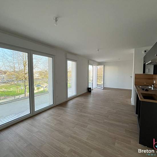 BRETON ET JEANNEAU IMMOBILIER vous propose : Dans une résidence neuve en plein centre de l'Huisserie : Un appartement T4 au 2ème et dernier étage, comprenant : une entrée avec placard, salle d'eau, WC, 2 chambres avec placard, un salon séjour avec coin cuisine aménagée et équipée (hotte, plaque) donnant sur un balcon de 24m² exposée Ouest, une buanderie, WC, une chambre avec placard et salle d'eau privative. Deux places de parking privatives extérieures. Une cave. Chauffage électrique individuel. Loyer : 1000 Euro + 172Euro de provisions sur...