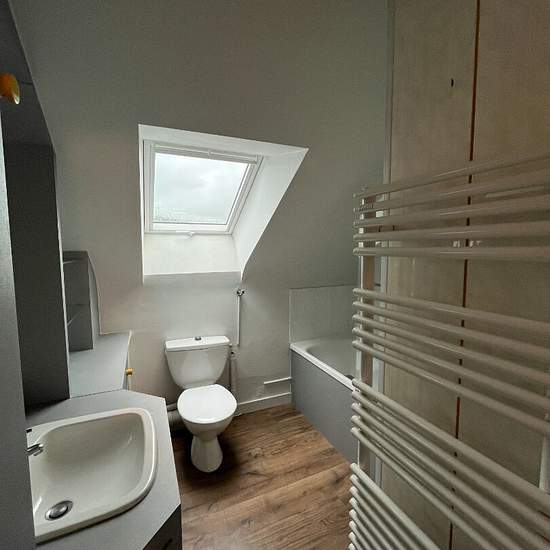 Idéalement situé, ce T4 duplex exposé SUD donne directement sur l'Elorn. Au troisième étage avec ascenseur, il se compose au 1er niveau d'une entrée avec placard, d'un séjour, une cuisine aménagée semi-équipée, une chambre et un WC. A l'étage, 2 chambres avec placards, une salle de bain avec un WC. Chauffage électrique. Une cave. Prévoir 11 .60 euros/mois supplémentaire pour la mensualisation de la taxe d'ordures ménagères. Libre de suite. Premier contact en répondant à l'annonce.