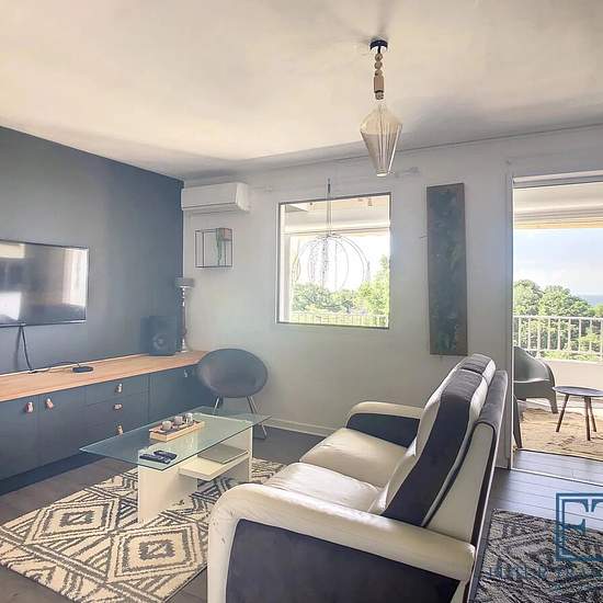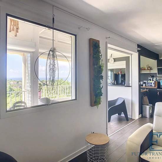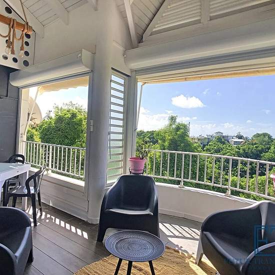 Le Gosier / secteur Pliane IDEAL CO-LOCATION Appartement T4 en duplex très spacieux / 3 chambres / 2 salles d'eau / 2 WC. Une très belle surface à vivre ! 95 m2 surface Carrez / 120 m2 de surface intérieure utile hors terrasse + terrasse 15,63 m2. Bel appartement T4 en duplex entièrement meublé, situé au 1er étage d'une petite copropriété (12 lots) avec accès sécurisé, dans un secteur très calme sur les hauteurs du Gosier, avec une vue dominante mer et nature. L'appartement comprend : > au 1er niveau, une entrée, un WC, un séjour climatisé l...