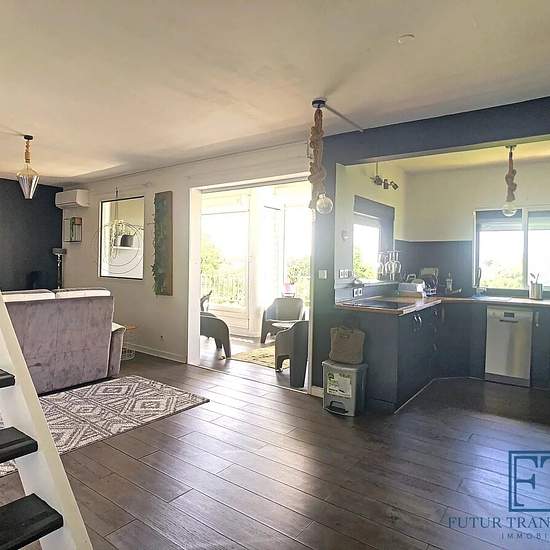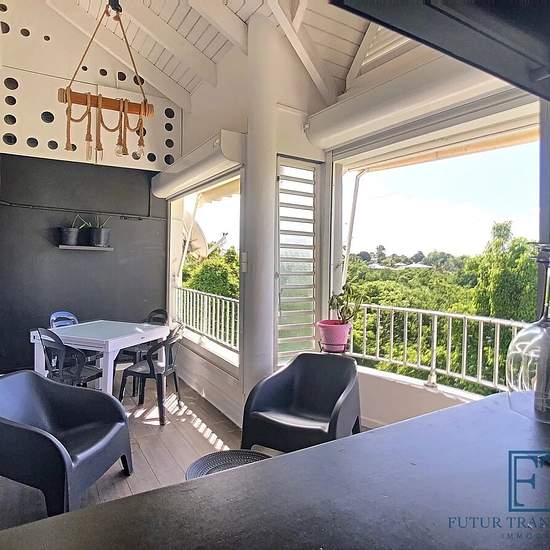 Le Gosier / secteur Pliane IDEAL CO-LOCATION Appartement T4 en duplex très spacieux / 3 chambres / 2 salles d'eau / 2 WC. Une très belle surface à vivre ! 95 m2 surface Carrez / 120 m2 de surface intérieure utile hors terrasse + terrasse 15,63 m2. Bel appartement T4 en duplex entièrement meublé, situé au 1er étage d'une petite copropriété (12 lots) avec accès sécurisé, dans un secteur très calme sur les hauteurs du Gosier, avec une vue dominante mer et nature. L'appartement comprend : > au 1er niveau, une entrée, un WC, un séjour climatisé l...