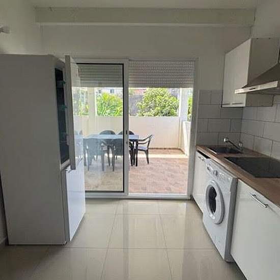Appartement Le Moule 4 pièce(s) 83 m2. Exclusivité Orpi, magnifique appartement meublé proche des commodités! Il se situe au 1er et dernier étage d'un petit bâtiment composé de 3 appartements dans le centre ville du Moule au calme dans une rue très peu passante. Il se compose d'une pièce de vie spacieuse et lumineuse avec sa cuisine aménagée et équipée, une très grande terrasse couverte d'environ 33m², une chambre climatisée et une salle d'eau/wc. A l'étage deux chambres climatisées , un wc indépendant ainsi qu'un espace offrant la possibili...