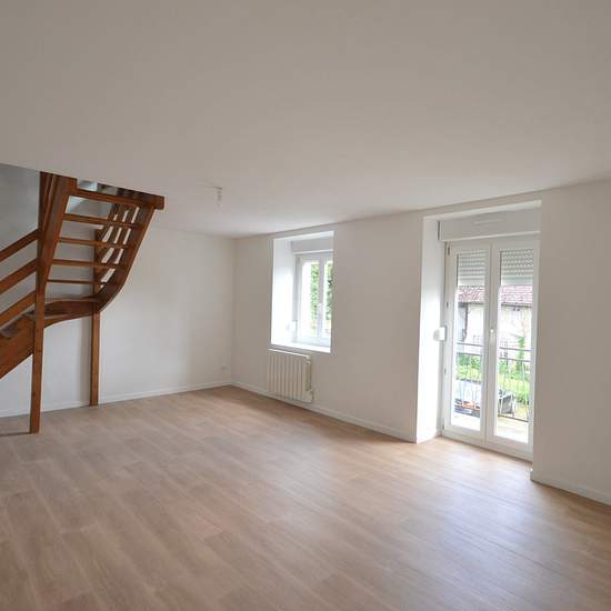 Longevelle/Doubs, appartement refait à neuf avec garage (2 voitures) et balcon. Il bénéficie d'une entrée indépendante et comprend au 1er niveau : Cuisine équipée, sdb, séjour, 1 chambre. A l'étage : grande mezzanine, 2 chambres (dont 1 avec wc et lavabo) Disponible de suite ! Loyer : 695EUR ( dont 30EUR de charges avec régularisation annuelle) Dépôt de garantie : 665EUR Honoraires charge locataire : 418.95EUR (dont 119.70EUR pour état des lieux)