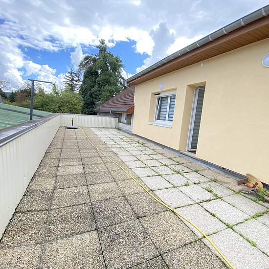A louer a MANDEURE, dans un secteur prisé et au calme, APPARTEMENT T4 de 84 m2 avec entrée individuelle, comprenant : une entrée, une magnifique cuisine équipée neuve, une beau salon/séjour, 3 chambres, une salle d'eau avec douche italienne, un wc séparé. Une très grande terrasse sans vis-à-vis, cellier et une cave complètent cet appartement Le chauffage est au gaz. Une isolation a été faite par l'extérieur. L'appartement est entièrement rénové à neuf (fenêtres, volets électriques, isolation, cuisine, salle de bain...) RARE SUR LE MARCHE
