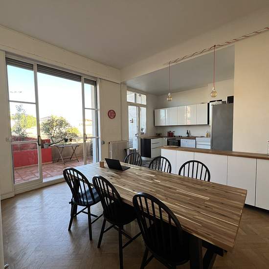 L'agence La Comtesse Immobilier vous propose à la location un magnifique et spacieux appartement meublé de type 4 situé au 26 Boulevard National, dans le quartier Longchamp / Saint-Charles / Cinq Avenues, 13001 Marseille. Disponible à partir du 1er janvier. Au troisième étage avec ascenseur, cet appartement de 135 m2 se trouve dans un immeuble bien entretenu. Il dispose d'une double exposition et offre un vrai calme côté cour. Il se compose d'un vaste séjour salle à manger, d'une cuisine semi-ouverte entièrement meublée et équipée, l'ensembl...