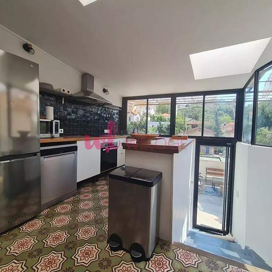 Marseille 7è, dans le Vallon de l'Oriol appartement de type 4 comme une maison. Appartement en duplex comprenant un séjour / cuisine à l'étage, 2 chambres et salle d'eau, au rez de chaussée 1 chambres et salle d'eau et wc et rangements. Appartement climatisé. Une belle terrasse de 54 m2. Box à 5 minutes à pied. Appartement meublé en location en bail civil (10 mois).