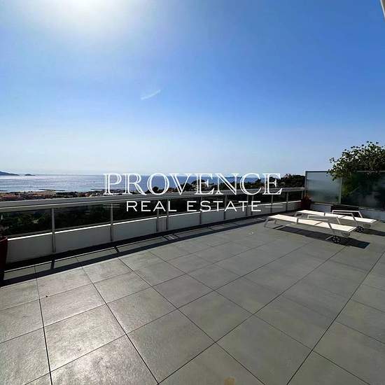 LES JARDINS DE THALASSA - LOCATION MEUBLEE d'un superbe duplex vue mer en dernier étage d'une résidence prisée et sécurisée avec gardien 24/24, conciergerie, tennis, piscine et restaurant. Distribution répartie sur 2 niveaux comprenant bel espace de réception avec cuisine US entièrement équipée et vastes terrasses, 3 chambres avec terrasses dont master avec dressing, 3 salles de bains et/ou douche, nombreux rangement. 1 garage et 1 cave complètent ce bien. Parc fermé sécurisé disposant également de très nombreuses places de stationnement. Di...