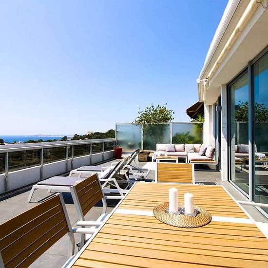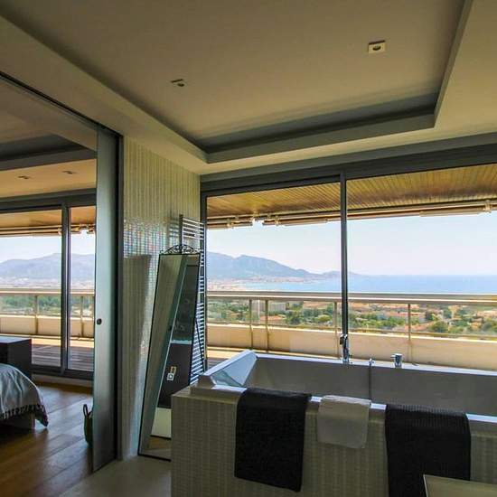 PLEIN CIEL est un sublime duplex au 15ème et dernier étage d'un immeuble dans une résidence sécurisée des plus prisées de Marseille. L'entrée se fait dans un salon d'accueil qui distribue le coin nuit : une chambre avec salle de bain/toilettes et rangements, une chambre avec rangements. Elles bénéficient d'une vue panoramique sue la ville. Côté mer, une immense suite parentale est composée d'une chambre avec salle de bain et hammam et d'un incroyable dressing équipé. Tout cet espace donne sur une vue magnifique. Une salle de bain individuell...