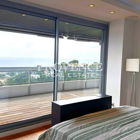 LES JARDINS DE THALASSA - LOCATION MEUBLEE d'un superbe duplex vue mer en dernier étage d'une résidence prisée et sécurisée avec gardien 24/24, conciergerie, tennis, piscine et restaurant. Distribution répartie sur 2 niveaux comprenant bel espace de réception avec cuisine US entièrement équipée et vastes terrasses, 3 chambres avec terrasses dont master avec dressing, 3 salles de bains et/ou douche, nombreux rangement. 1 garage et 1 cave complètent ce bien. Parc fermé sécurisé disposant également de très nombreuses places de stationnement. Di...