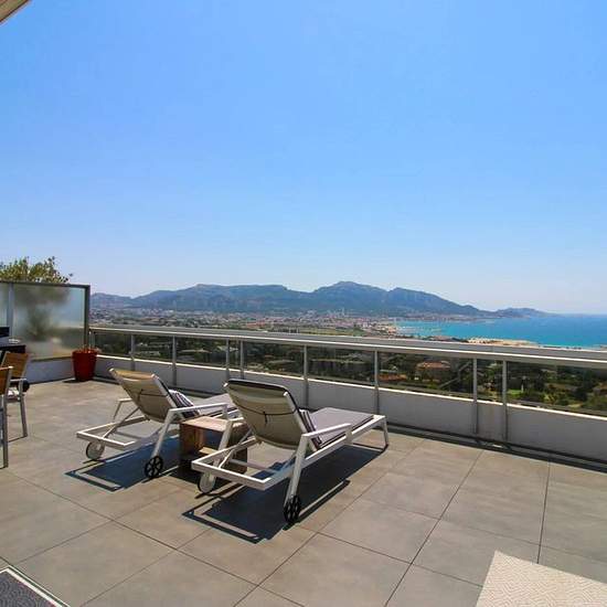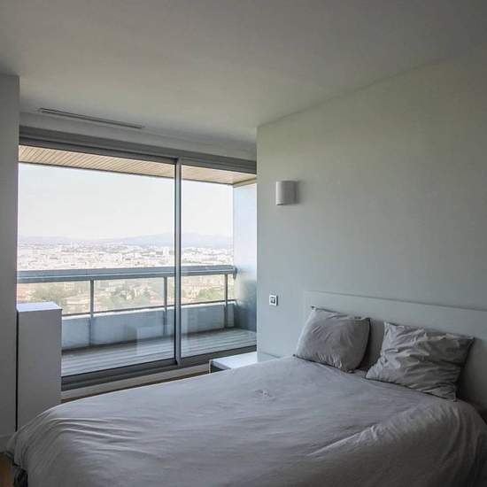 PLEIN CIEL est un sublime duplex au 15ème et dernier étage d'un immeuble dans une résidence sécurisée des plus prisées de Marseille. L'entrée se fait dans un salon d'accueil qui distribue le coin nuit : une chambre avec salle de bain/toilettes et rangements, une chambre avec rangements. Elles bénéficient d'une vue panoramique sue la ville. Côté mer, une immense suite parentale est composée d'une chambre avec salle de bain et hammam et d'un incroyable dressing équipé. Tout cet espace donne sur une vue magnifique. Une salle de bain individuell...