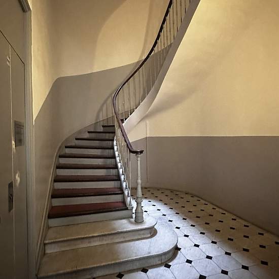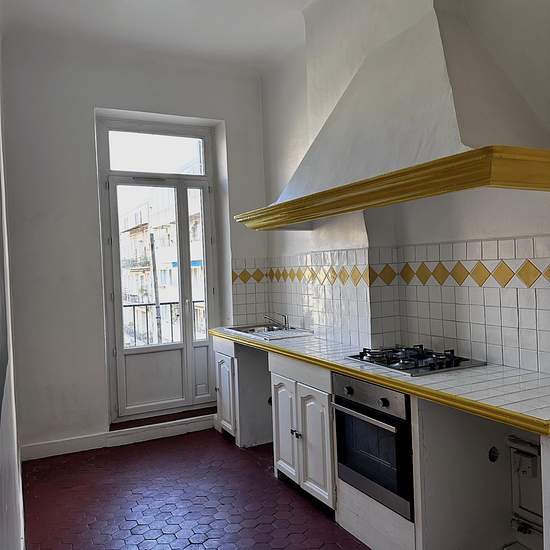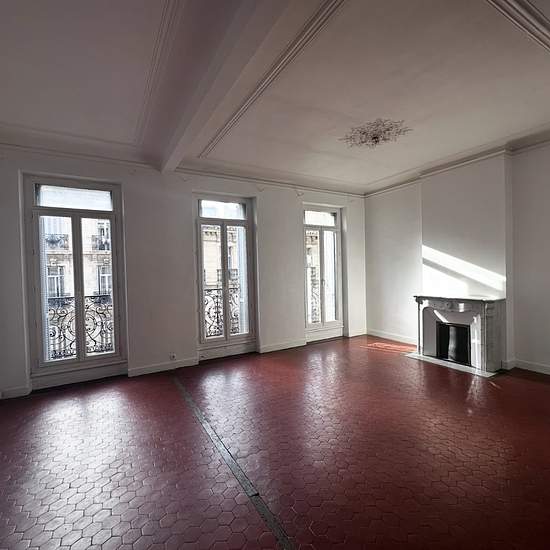 Appartement traversant dans immeuble ancien au 2 ème étage composé d'une vaste entrée desservant coté rue un très grand séjour très clair, 3 fenêtres et cheminée décorative + 1 dressing et d'une chambre . Côté cour à l'arrière, d'une grande chambre parentale , d'une chambre enfant les 2 avec balcon ,d'une cuisine semi-équipée d'une plaque de cuisson et d'un four, d'une salle de bains avec baignoire, d'un wc séparé, de dégagements avec 4 placards et d'un wc séparé. 1 pièce noire située dans l'entrée pouvant servir de bureau