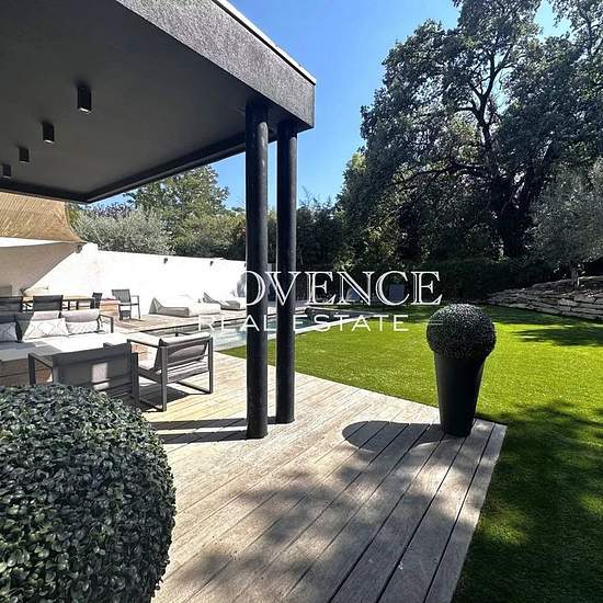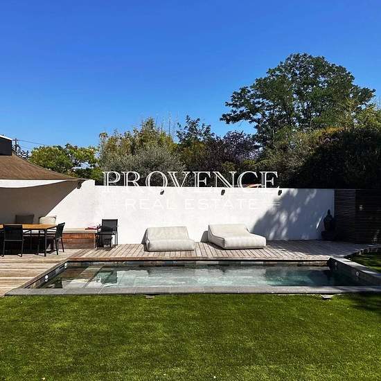 LOCATION MEUBLEE d'une très belle villa contemporaine d'environ 160 m² située dans un lieu calme et à l'abri des regards. Sa distribution optimisée vous séduira par son bel espace de vie plein sud avec cuisine US entièrement équipée ouverts par de larges baies à galandage sur le jardin paysagé et la piscine, une suite parentale avec salle d'eau et WC qui offrent un espace intime et fonctionnel, deux autres chambres avec rangements, une salle de bains, un vaste open-space permettant une utilisation spécifique en fonction de vos besoins (salle...