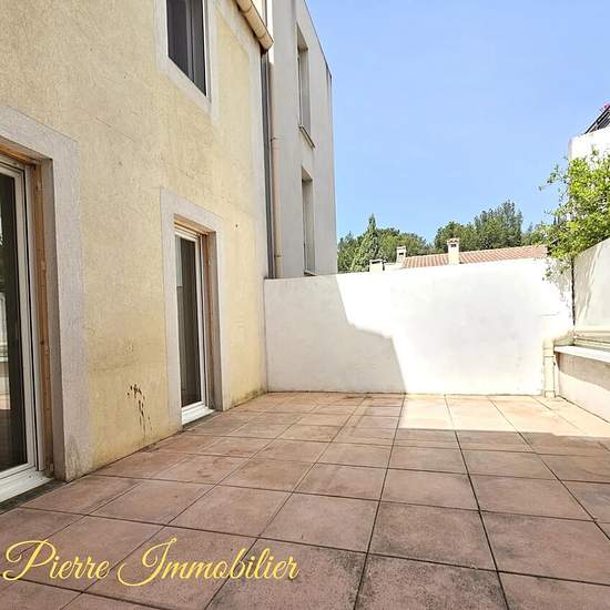Nous vous proposons à la location cet appartement de type 4 situé en rez-de-chaussée d'une résidence fermée et sécurisée. Le logement est composé d'une cuisine ouverte sur le salon - séjour. Cette pièce à vivre est ouverte sur une terrasse de 20m². Concernant le coin nuit, vous trouverez 3 chambres dont 2 donnant également sur la terrasse, une salle de bains et des WC. Le logement est également loué avec un garage privatif en sous-sol.
