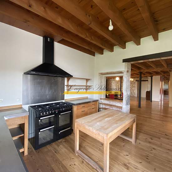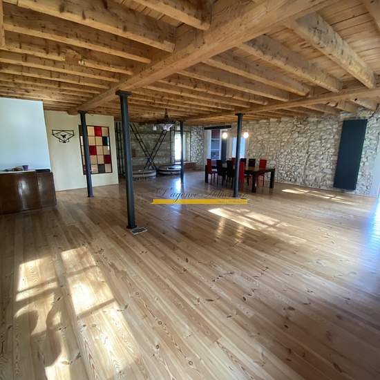 Dans une ancienne minoterie, ce logement atypique de 170 m2 plein de charme vous séduira tant par ses volumes que par la chaleur des matériaux, il est situé au premier étage d'une belle bâtisse en pierre. Séjour de plus de 80 m2. Cuisine ouverte, aménagée,trés bien équipée, piano de cuisson gaz, lave-vaisselle, hotte. Vous disposez de 3 grandes chambres dont une avec sa salle d'eau. Nombreux rangements, buanderie, une salle de bains avec balnéo. Extérieurs: deux terrasses, une Est l'autre Ouest. Vous bénéficiez de plusieurs places de station...