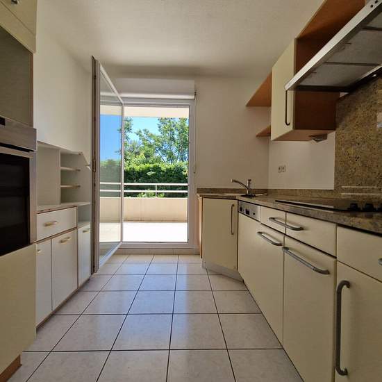 LOCATION Appartement T4 NU de 89.78 m² avec très belle terrasse et garage À louer, appartement T4 meublé, situé au 1er étage avec ascenseur, au sein d’une résidence calme et bien entretenue. L’appartement, lumineux et agréable à vivre, offre un séjour spacieux ouvrant sur une terrasse de 20 m², une cuisine aménagée et équipée, trois chambres, une salle de bains ainsi que des WC séparés. Le logement dispose d’un chauffage individuel et d’un garage en sous-sol, inclus dans la location. La location est proposée dans le cadre d’un bail meublé d’...