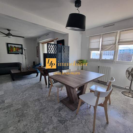 MONTPELLIER - 27 Avenue de la Croix du Capitaine - proche Halle Tropisme. L'agence LJP IMMOBILIER vous propose ce bel appartement T4 MEUBLÉ. Idéalement situé au 4ème étage avec ascenseur d'une résidence sécurisée, ce spacieux T4 est composé d'une entrée, d'une cuisine équipée avec balcon, d'un double séjour de 28m2 avec accès à une loggia et un balcon, 3 belles chambres (de 10,78, 11,75 et 13.03m2) , une salle de bains, un wc indépendant, une buanderie et de nombreux rangements. Les plus : une place de stationnement. Les bus 7 et 38 sont dev...