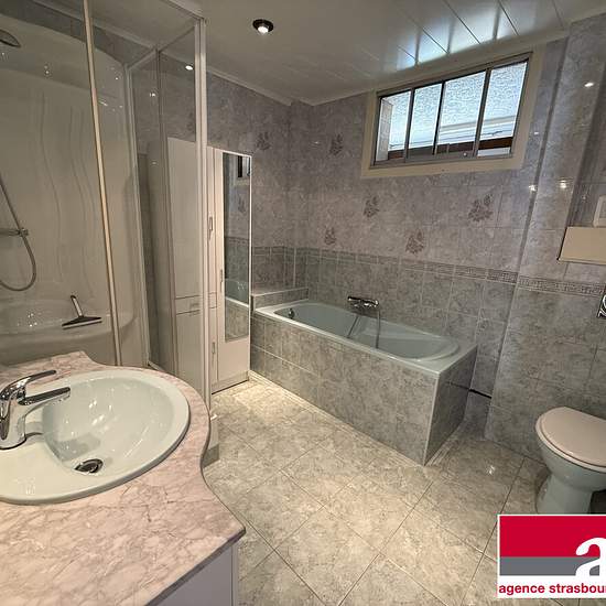Mundolsheim centre, 40 rue du général Leclerc - proximités commerces Agréable 4 pièces de 88m² au 1er étage sans ascenseur comprenant un grand séjour avec balcon couvert, cuisine séparée et équipée avec une loggia, salle de bains avec douche, baignoire et wc, 3 chambres de 10, 11 et 14m² avec des placards Une cave - Chauffage collectif au gaz et eau chaude individuelle électrique Disponible de suite Assurance garantie de loyers Contact Clara Lotz Honoraires de 895 € TTC à la charge du locataire comprenant 266,37 € TTC pour l'état des lieux. ...