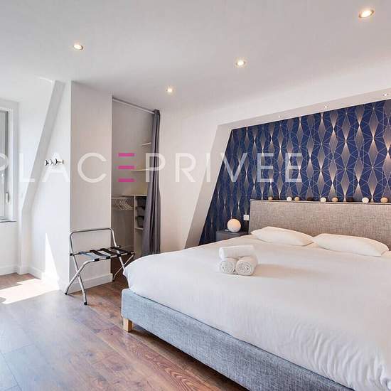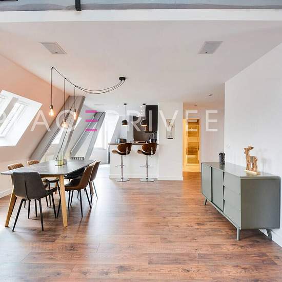 NANCY, rue Victor Hugo - A louer appartement de standing F4 entièrement meublé à Nancy, secteur Poincaré Foch Découvrez ce superbe appartement lumineux et confortable de 111 m² au sol (99,52 m² loi Carrez), situé au troisième et dernier étage d'un immeuble de caractère. Rénové avec soin dans un style contemporain, il offre des prestations haut de gamme et un mobilier de grande qualité. Ce bien d'exception comprend une entrée équipée de rangements ouvrant sur un vaste espace séjour salle à manger de 72 m² au sol, une cuisine ouverte moderne e...