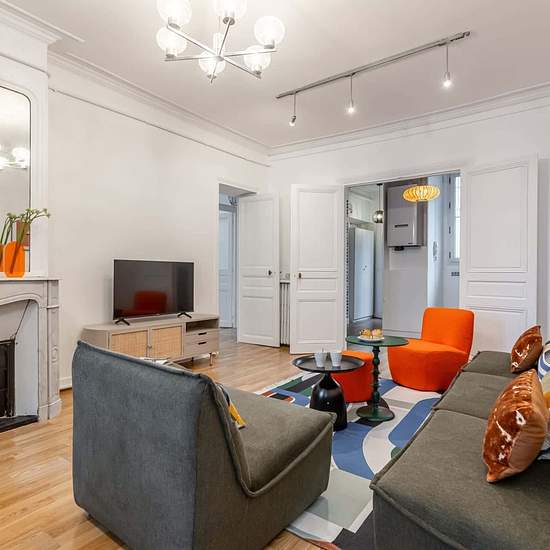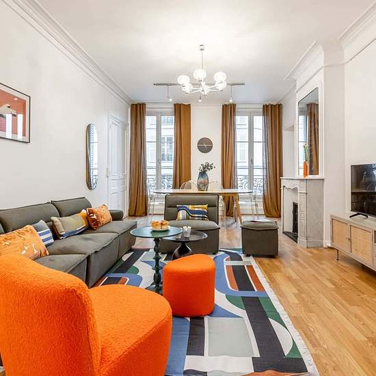 [EN] In the bustling Les Halles neighbourhood, the cheerful Lescot Sweett apartment is a three-bedroom picturesque apartment. Inspired by the timeless elegance of Paris, our local interior designer has created a lovely, inviting space. Picture windows, marble fireplaces, and vintage patterned wallpaper give this apartment its old-world appeal. The fully equipped kitchen has everything you need to master the art of French cooking. Children will love the charming play nook and the colourful decorative accents. In the first arrondissement, cobb...