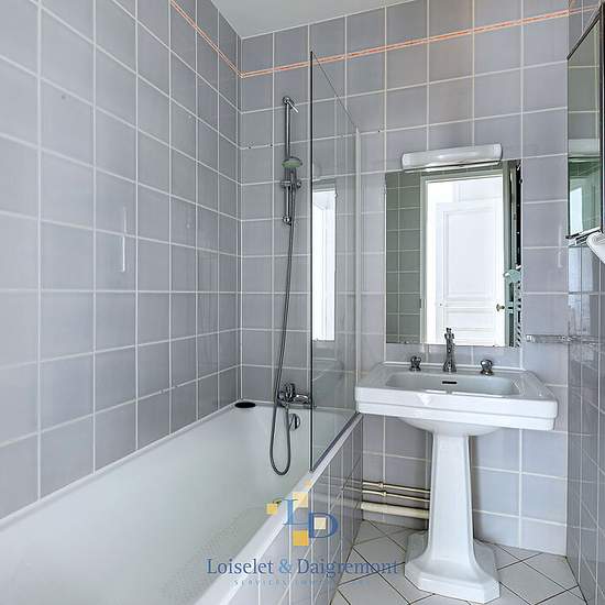 A propos de ce bien Rue Dupont des Loges, RER pont de l'Alma, bel immeuble ancien de grand standing avec gardien, visiophone, ascenseur, tapis escalier, au 5ème étage, appartement traversant composé d'une entrée, séjour, salle à manger, deux chambres dont une sur cour avec vue Tour Eiffel, cuisine indépendante, salle d'eau, salle de bains, 2 WC, chauffage et eau chaude collectifs, cave en sous-sol. Bail société /honoraires : 1 mois de loyer HC/HT