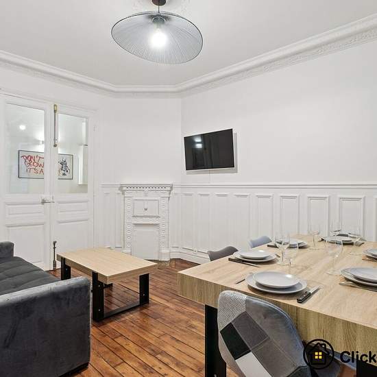 A propos de ce bien Appartement de 100m2 | 3 pièces | 2 chambres | 2 salles de bain | 2 toilette | Rue de Moscou, Paris 75008 | BAIL CODE CIVIL UNIQUEMENT. ClickYourFlat est ravi de vous présenter cet appartement situé au rez-de-chaussée sur cours, il offre tout le confort nécessaire. La pièce principale est un séjour chaleureux, avec un canapé-lit double, une télévision et une table à manger. Une cuisine ouverte, moderne et entièrement équipée. 2 chambres cosy avec un lit double. 2 salles de bain fonctionnelles avec 2 toilettes. N'hésitez ...
