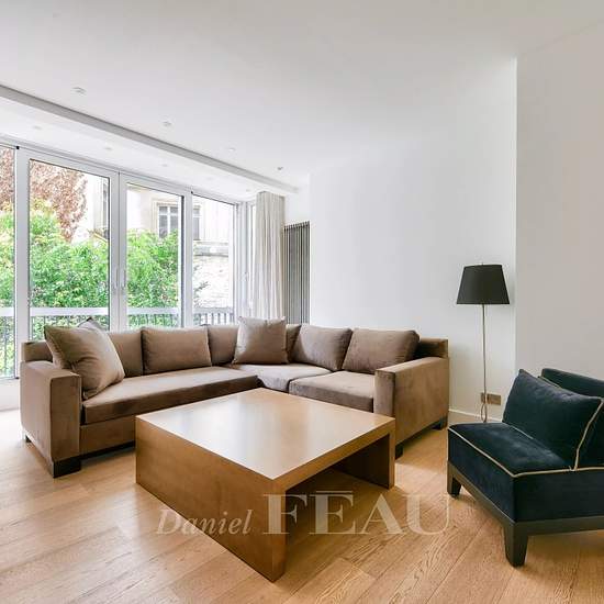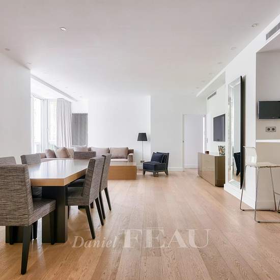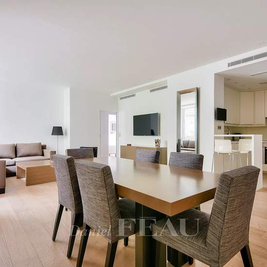 Au premier étage d'un bel immeuble sécurisé et gardienné de l'avenue Montaigne, appartement meublé de quatre pièces principales d'une surface de 88 m² entièrement rénové avec des matériaux de qualité. Il se compose d'une entrée, d'une cuisine aménagée et équipée ouvrant sur une double réception, de deux chambres et d'une salle de bains avec baignoire et double douche et de toilettes séparées. Parking disponible en supplément. Chauffage et eau chaude collectifs. Disponible début mars 2026. BAIL CODE CIVIL UNIQUEMENT (bail au nom d'une société...