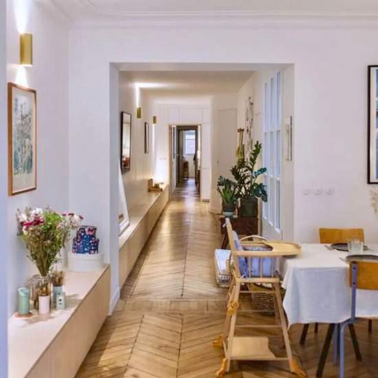 Idéalement placé à la limite des 9ème et 10ème arrondissements, au 5ème étage avec ascenseur d'un bel'immeuble en pierre de taille sécurisé et très bien entretenu, un appartement meublé de type 4 pièces d'une surface de 100m2, calme et très lumineux. Entièrement refait par un architecte, avec mobilier sur mesure, il dispose d'une entrée avec rangements, d'un séjour-salle à manger avec balcon sur rue, d'une cuisine aménagée équipée. L'espace nuit, intégralement sur cour, se compose d'une suite parentale avec dressing et salle d'eau, de deux c...