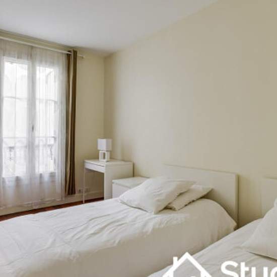 Situé au 3ème étage d'un immeuble calme et sécurisé, cet appartement parisien avec terrasse est parfait pour un séjour au coeur de Paris. Dans un séjour chaleureux, vous disposez d'un coin salon avec sa télévision, d'une cheminée et d'un coin repas. La cuisine indépendante est équipée de tout le nécessaire pour cuisiner : plaque de cuisson, bouilloire, réfrigérateur, four, micro-ondes, cafetière et des placards de rangement. L'appartement présente deux chambres avec respectivement un lit double et deux lits simples. Un couchage est également...