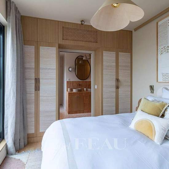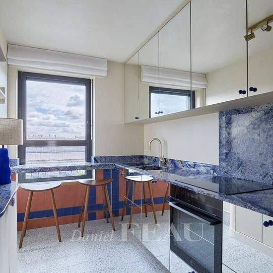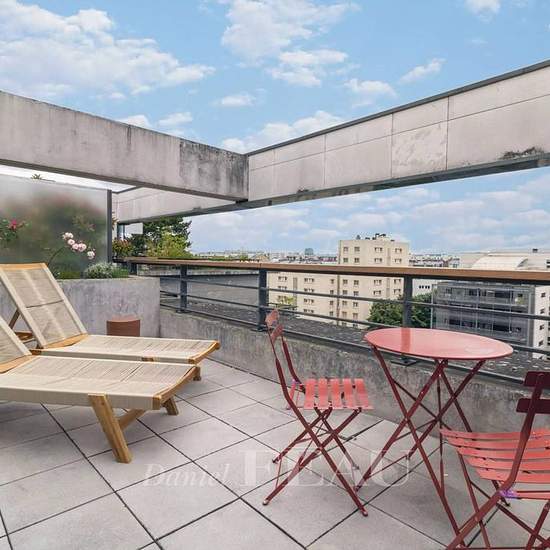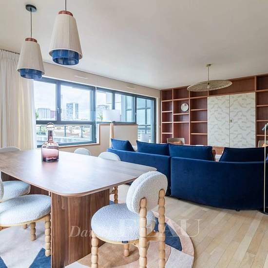 RARE A LA LOCATION - Au 9ème et dernier étage avec ascenseur d'un immeuble récent et sécurisé, sublime appartement meublé de 100 m² refait à neuf par un architecte de renom et entièrement climatisé, disposant d'une terrasse de 80m² offrant une sublime vue Tour Eiffel. Il se compose comme suit : une entrée, un double séjour salon/salle à manger donnant accès à une terrasse arborée de 80 m² exposée sud-ouest offrant une magnifique vue sur la Tour Eiffel, une cuisine entièrement équipée, une chambre en suite avec salle de bains/douche et dressi...