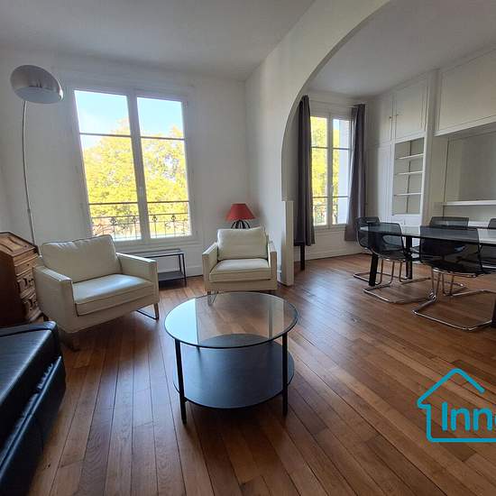 Situé au 3ème étage (avec ascenseur) d’un bel immeuble des années 1900, cet appartement meublé de 69 m² Carrez est très fonctionnel et plein de cachet. Il comprend : - 1 entrée - 1 double-séjour de 26,5 m², orienté au nord-ouest, lumineux et avec une belle vue dégagée - 1 cuisine aménagée et équipée - 2 chambres au calme sur cour : 1 (de 13 m²) avec lit double et 1 (de 7 m²) avec lit simple - 1 salle-d’eau avec douche - 1 WC indépendant. 1 cave de 6,4 m² complète ce bien. La copropriété est très agréable, sécurisée et bien entretenue. L’appa...