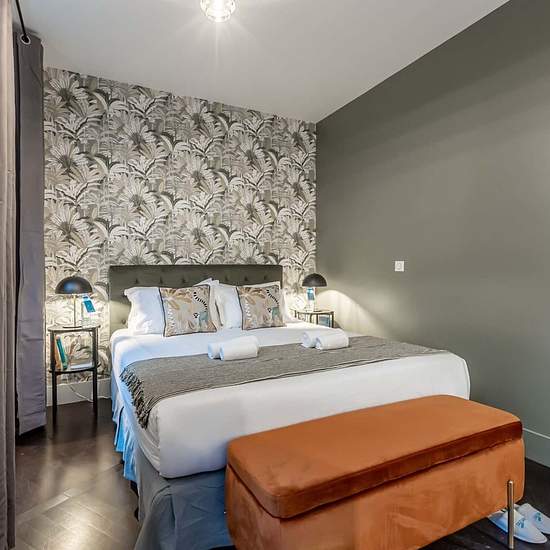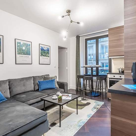 [EN] The lovely three-bedroom Troyon Sweett apartment blends modern decor with classic Parisian style. Refurbished by our local interior designer, this apartment has an artistic flair. Pattern wallpapers and bold colours give this space its modern character. The fully equipped kitchen has everything you need for in-house dining, and the three bedrooms have plush double beds. In the heart of the eighth arrondissement in Paris, it’s a short stroll to some of the city’s most famous attractions, including the Arc de Triomphe and the Champs-Elyse...