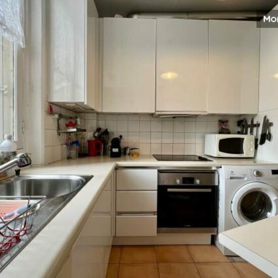 This charming, spacious and quiet 3-room flat is 80 m² (860 sq ft) and overlooks rue Damrémont. It is located in the 18th arrondissement of Paris. Sleeps 4 people. Neighbourhood Butte Montmartre - Cimetière Montmartre. The flat is located on the 1st floor with lift of a typically Parisian secure building. It offers a living and dining room, a separate fully-equipped kitchen, 2 bedrooms, a bathroom and a separate toilet. There is no sofa bed in the living room and the roller shutters in the living room do not work, so it is not possible to sl...