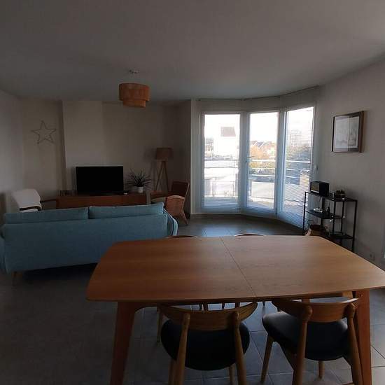 Appartement Plougastel-daoulas 4 pièces 84.43 m2. A proximité immédiate du centre-ville dans une résidence récente, très bel appartement T4 au 2ème et dernier étage avec ascenseur. Grand séjour avec belle terrasse et cuisine américaine équipée, deux chambres avec placards, Grand garage double en sous-sol. libre à la location le 22 janvier 2026.