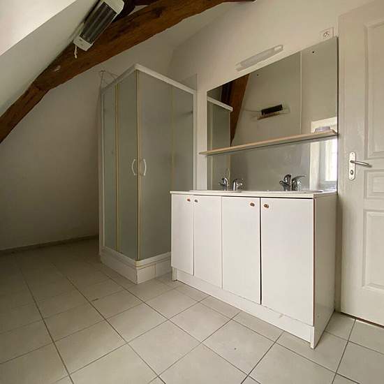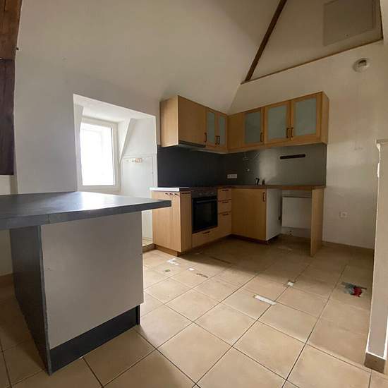 REF 5748 - T4 au Château de RECOLOGNE, dans parc arboré, 2° et dernier étage, 98 m², entrée sur séjour avec cuisine ouverte équipée, mezzanine, 2 chambres, 2 SDB, chauffage collectif, poutres apparentes, local à vélo, 1 parking réservé extérieur, cave, LIBRE