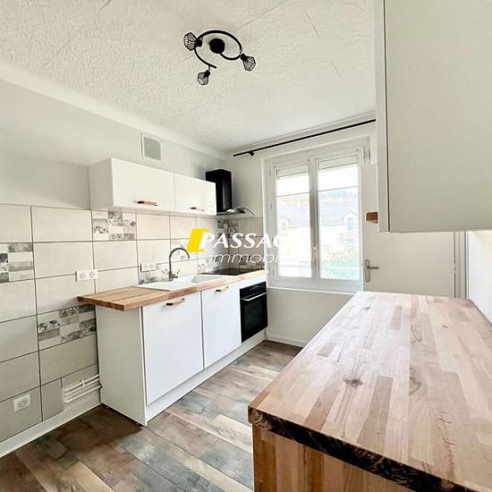 RODEZ : Quartier Cardaillac T4 traversant lumineux comprenant un hall d'entrée avec placard, une cuisine aménagée (meubles hauts et bas, hotte aspirante à recyclage, plaque de cuisson induction, four, lave-vaisselle) avec un cellier, un séjour, un dégagement coin nuit, trois chambres, une salle d'eau aménagée, un WC indépendant. Annexes : Une grande cave et un garage