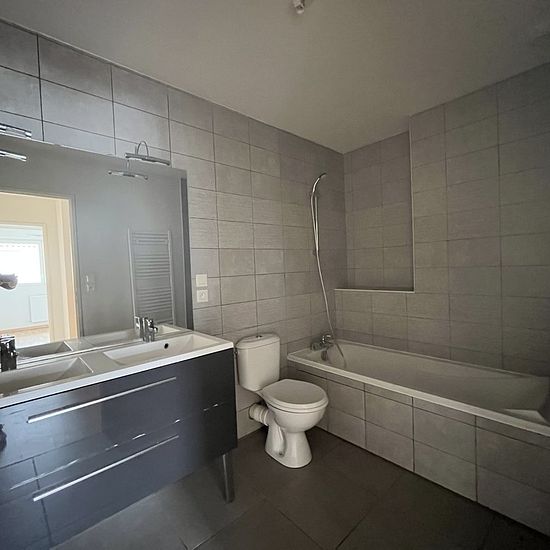 31120 / roques sur garonne 75bis route de villeneuve / duplex t4 avec garage grand t4 de 89.20 m² qui se compose au rez de chaussée d'un wc avec point d'eau, d'un salon / séjour de près de 40 m² avec cuisine us entièrement équipée (four, plaques vitrocéramiques, hotte, rangements hauts et bas, bar repas). À l'étage 3 chambres en parquet avec placards entièrement aménagés et une salle de bains avec double vasque, wc et baignoire. L'espace extérieur accueille un jardin clôturé de 100 m² environ avec terrasse. Le logement comprend une place de ...