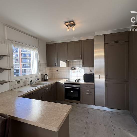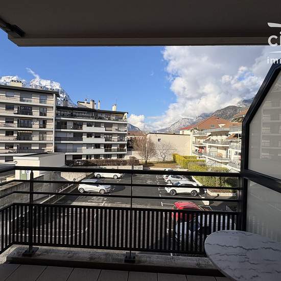Nous vous proposons à la location un appartement 3 pièces + un bureau ou petite chambre. Il se situe à Sallanches à proximité du centre ville (74700) au 2eme étage d'une résidence récente et sécurisée. Il se compose : d'une entrée avec placards, d'une chambre avec balcon et placard, d'un séjour donnant sur un second balcon, d'une cuisine ouverte, d'une salle de bains, d'un WC, d'un bureau et d'une deuxième chambre. Le bureau peut faire office de 3? chambre. Un garage et une cave complètent ce bien. Chauffage individuel gaz Performance énergé...