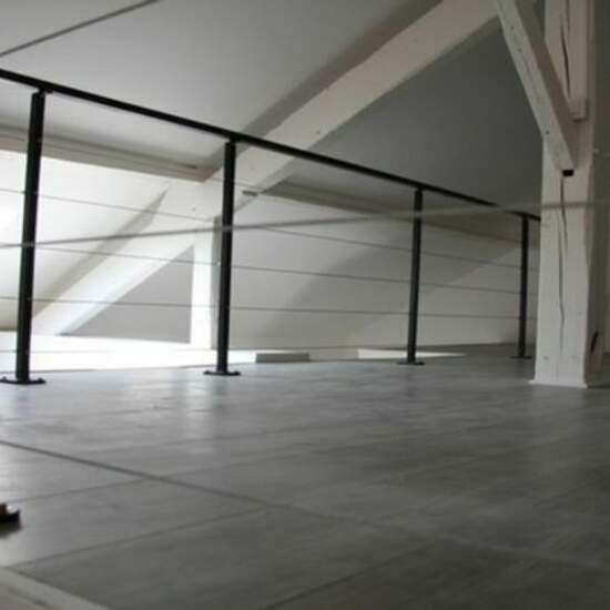 Idéal profession libérale, location d'un loft de 100m² environ comprenant 2 bureaux fermés et un open space avec mezzanine 2 salles d'eau wc, 3 parkings privés. Chauffage individuel électrique et jardin privatif de 350 m². Loyer HT 1700 eurosuros et charges 20 euros.
