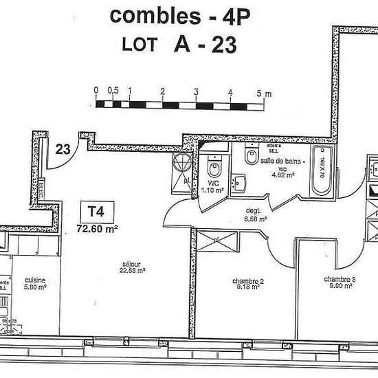Situé à 15mins à pied de la gare, charmant logement de type F4 perché au 5ème et dernier étage d'une résidence de standing. Chauffage et eau chaude individuels électrique. Un double emplacement de parking au 2ème sous-sol.