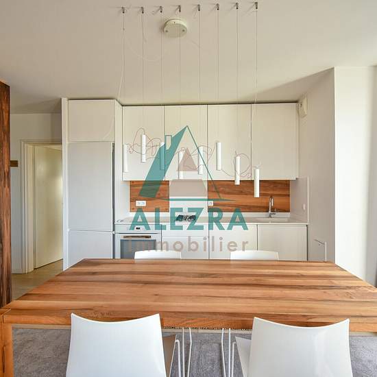 - Rue des Tremblaux - Magnifique appartement situé au calme et lumineux - loué MEUBLÉ - 4 pièces de 84 m2 en dernier étage avec terrasse (53m2). Entièrement meublé avec des prestations haut de gamme et aménagé par une Architecte, il se compose d'une entrée avec dressing, un séjour (33m2) exposé S/O avec cuisine équipée ouverte, trois chambres avec rangements, une salle de bain avec w.c. Une salle de douche. Deux emplacements de parking privatifs. Copropriété fermée de 2015, avec ascenseur. A 12 min en bus ou en vélo de la gare de Sartrouvill...