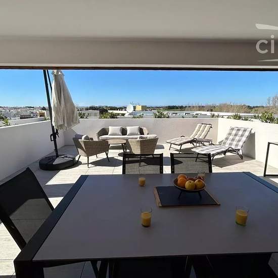 LOC SAISON : Offrez-vous un cadre de vie exceptionnel avec cet appartement T3 duplex au Jardin de Sérignan. Profitez de sa grande terrasse, de la vue partielle sur la mer, de ses équipements haut de gamme, et d'un accès à la piscine collective. Idéalement situé à proximité de la mer et des commodités, cet appartement est le lieu parfait pour conjuguer confort et sérénité. Venez découvrir ce superbe appartement T3 duplex situé dans une résidence neuve au Jardin de Sérignan. Situé au troisième étage avec ascenseur, cet appartement de haut stan...