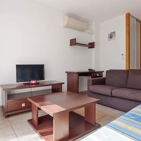 [FR] Location appartement T4 meublé de 75m² à Six-Fours-les-Plages proche de Toulon : 2490€/mois charges comprises. Cet appartement peut accueillir 8 personnes, il se compose de deux chambres avec un lit double et une chambre avec deux lits simples, d'une pièce à vivre avec un canapé lit, un coin bureau avec une TV écran plat, kitchenette entièrement équipée et une salle de bain et WC. La cuisine équipée dispose notamment d'un micro-onde, d'un réfrigérateur, des plaques électriques, d'une cafetière et d'une bouilloire. De la vaisselle et des...