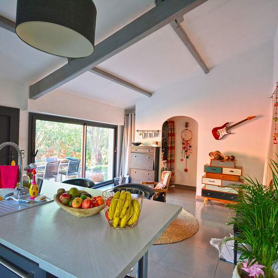 Dans un écrin de verdure, appartement / villa de 131 m² en triplex. Il se compose en rdc d'un séjour, d'une cuisine ouverte entièrement équipée avec cellier attenant et d'un wc indépendant, en étage d'une chambre type suite parentale (25 m²) avec salle d'eau / wc, en demi étage supérieur, dégagement, deux belles chambres (16 & 27 m²) dont une avec salle de bain. Deux terrasses privatives, deux places de parking. Chauffage central par pompe à chaleur, climatisations. Dpe b / a - disponible le 01 / 03 / 2026 - loyer 1580€ + forfait charges 250...