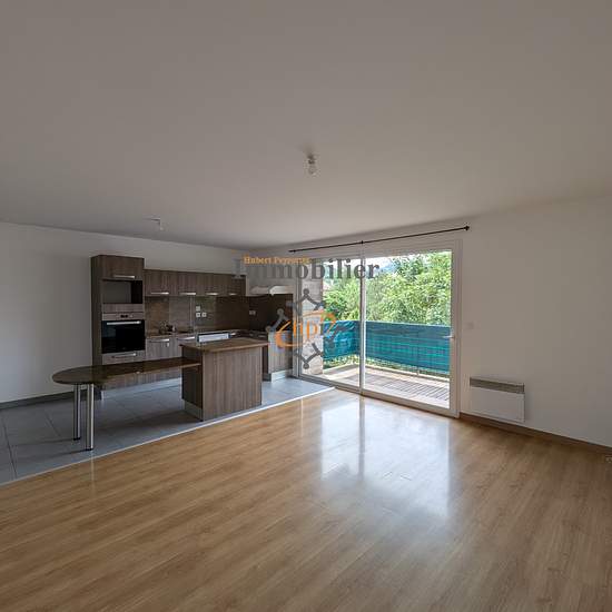 St Affrique, proche centre, à louer appartement de type 4, en 1er étage, 90 m2 habitables. Entrée sur salon séjour avec cuisine américaine intégrée et semi-équipée (plaque, hotte, four et lave-vaisselle) donnant sur terrasse, dégagement distribuant 3 chambres avec placards, salle d'eau équipée et WC séparé. Terrasse, parking. Vue dégagée sur la ville. Disponible le 07/06/2025. hubert-peyrottes-immobilier.fr